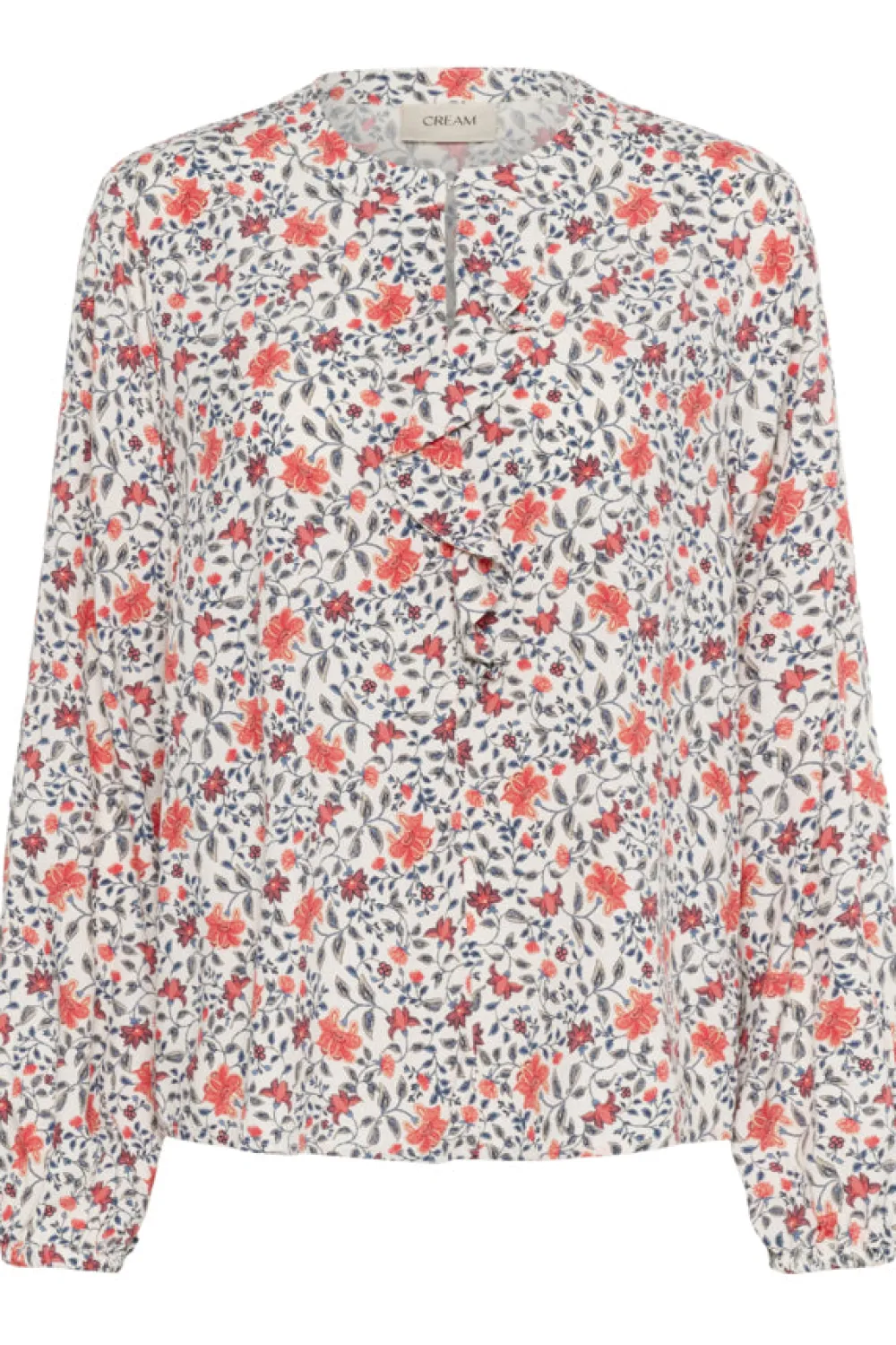 Cream CRNaomi Flounce Blouse Porcelain Rose Flower- Shirts & Blusen