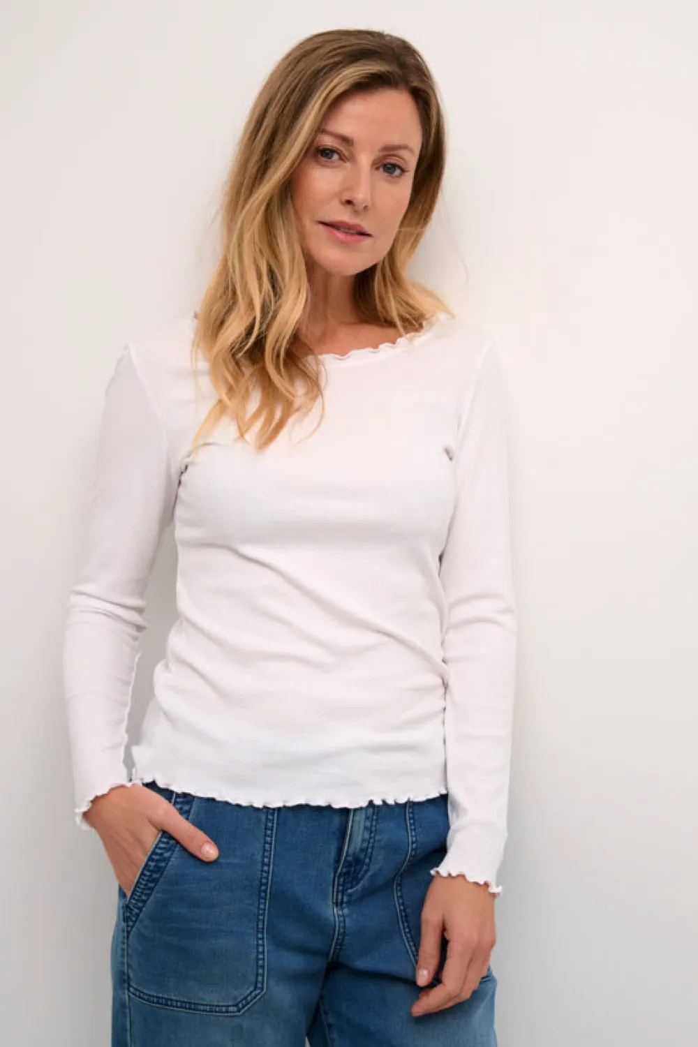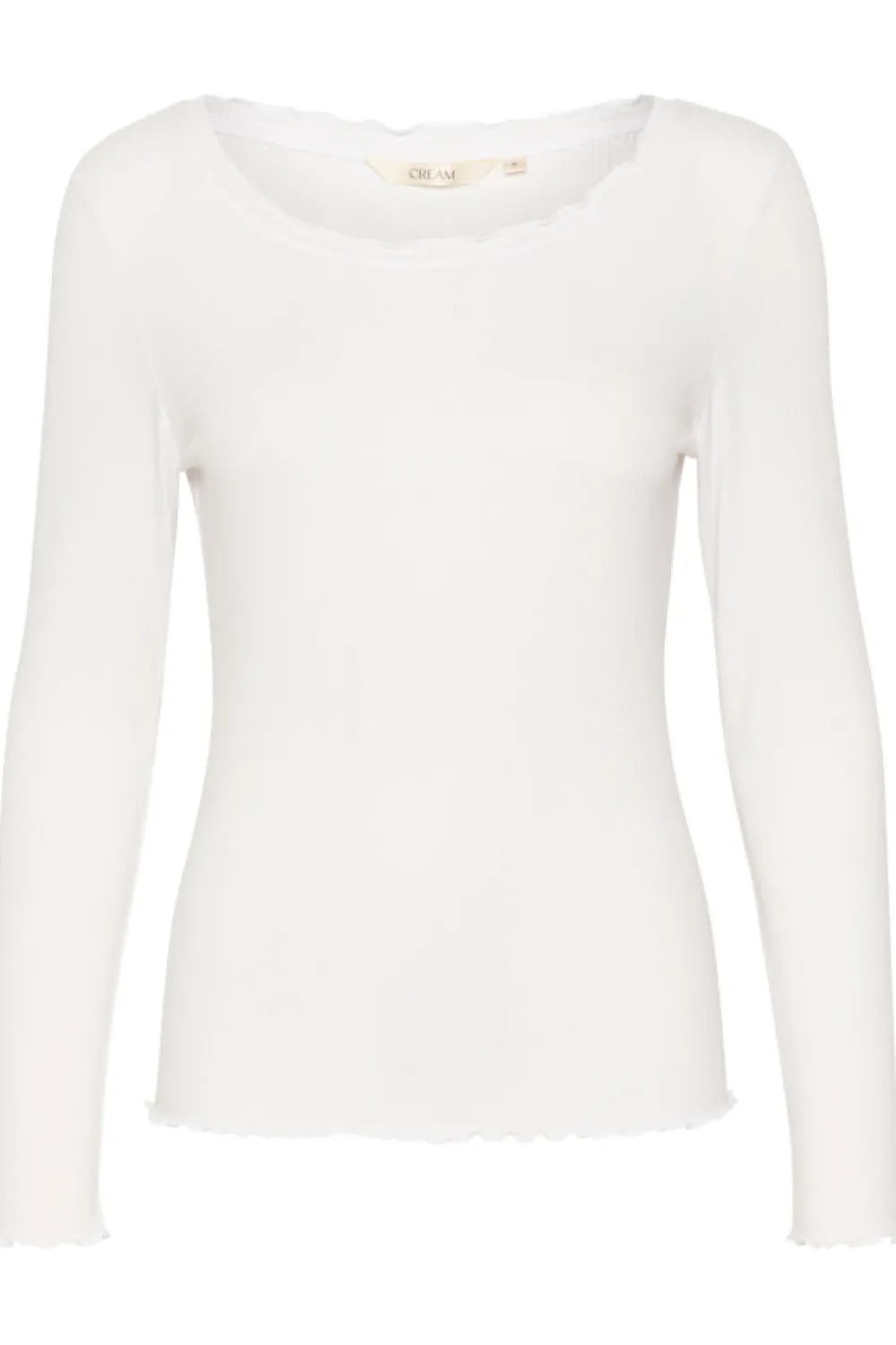 Cream CRRibba LS T-Shirt Snow White- T-shirts & Tops