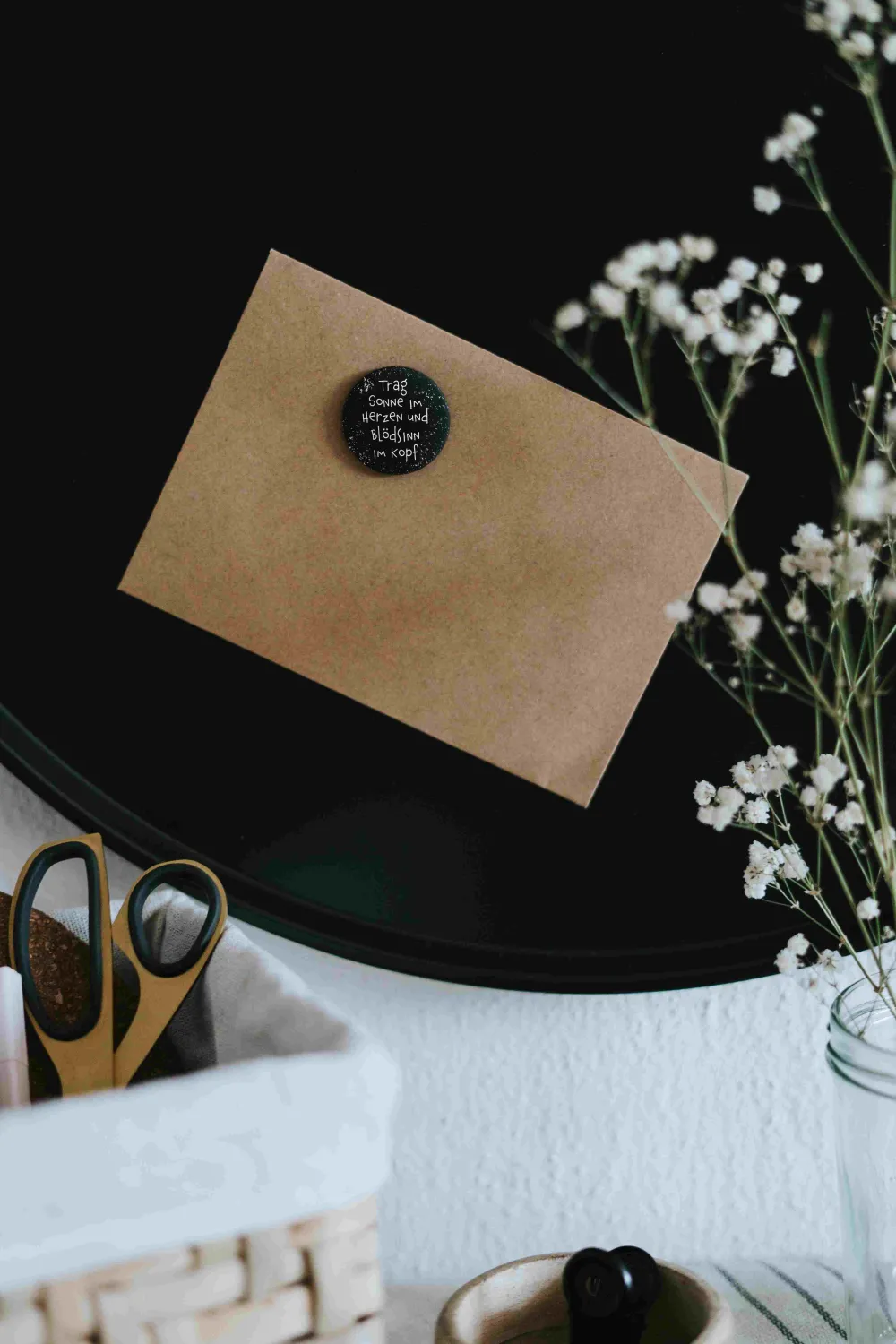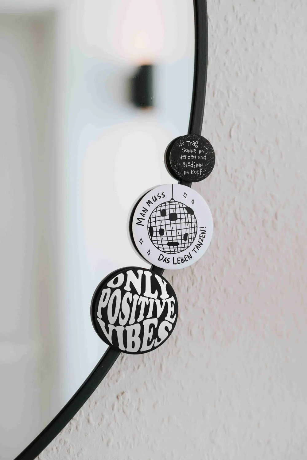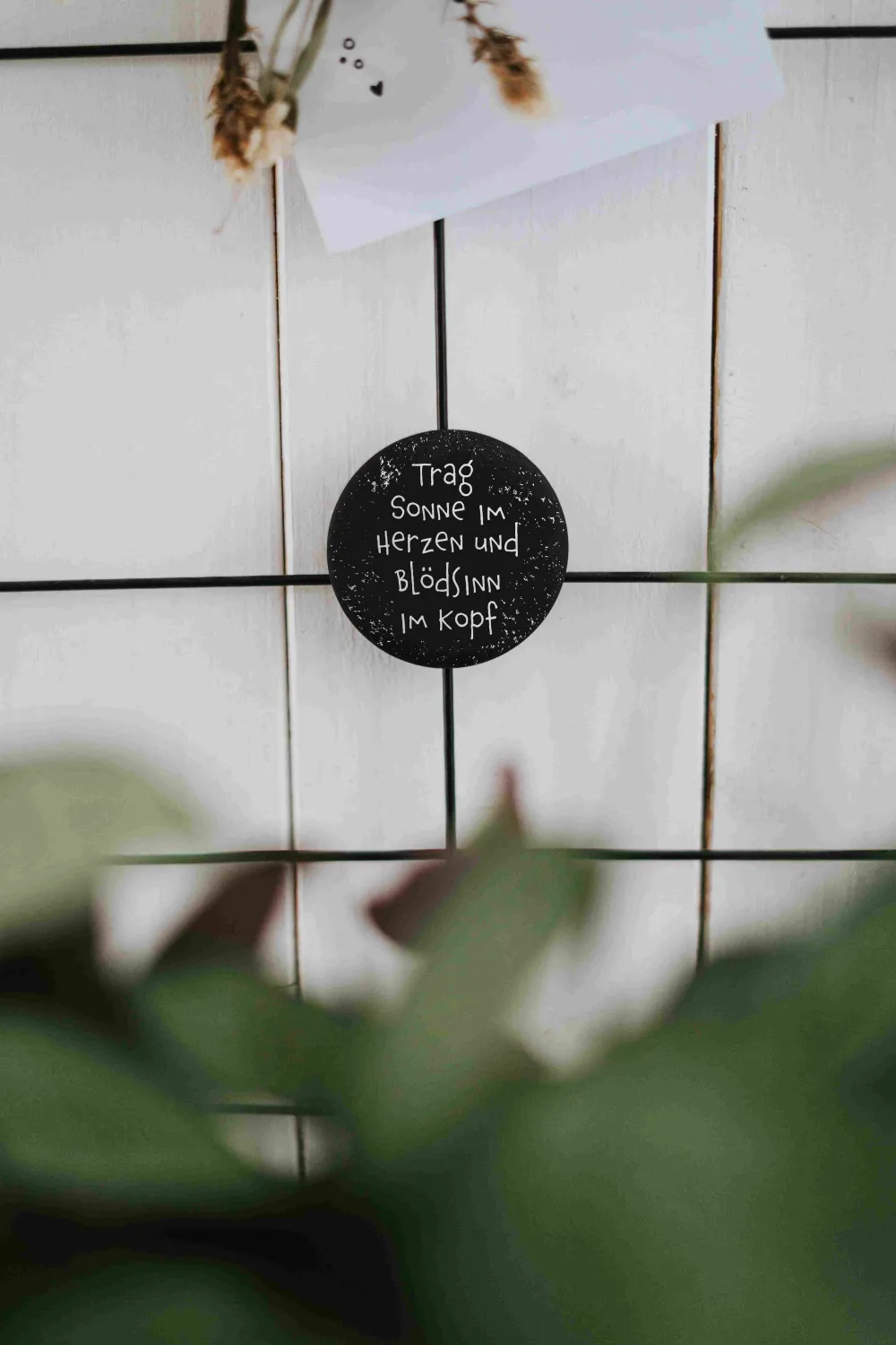 Entdecke unseren stilvollen kleinen Magnet mit dem Spruch „Trag Sonne im Herzen und Blödsinn im Kopf“. Perfekt, um dir und anderen ein Lächeln ins Gesicht zu zaubern und deinen Alltag aufzuhellen! Ideal für den Kühlschrank, das Büro oder jeden anderen magnetischen Untergrund. Details Größe: 32 mm Durchmesser Matt und samtweich Design: Spruch oder Illustration in Schwarz-Weiß Perfekt für den Kühlschrank oder die Pinnwand
