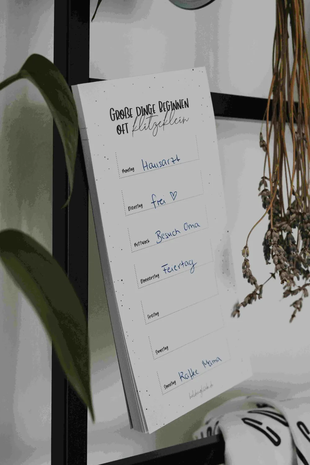 Den wöchentlichen Einkauf ins Handy tippen kann jeder… Einkaufszettel kritzeln, zusammenfalten, in der Tasche suchen und am Ende zufrieden abhaken – das ist doch die viel schönere Variante! Zumindest, wenn man ein bisschen Spaß haben will im Leben – und dafür sind wir ja bekanntlich immer zu haben. • Format: DIN lang (105mm breit, 210mm lang)• Material: weißes Naturpapier in 120g/qm• Mit Magneten auf der Rückseite zum Aufhängen • Umfang: 50 Blatt