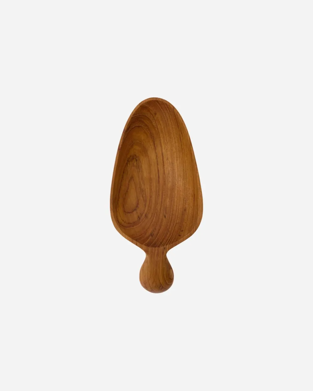 Bring mit Holzobjekten wie zum Beispiel diesem großen Löffel von House Doctor eine natürliche Stimmung in deine Küchendeko. Der warme Braunton des Teakholzes bietet einen schönen Kontrast zu Metall, Glas und anderen Materialien, die du in deiner Küche hast. Verwende den Löffel namens Tawo, um Getreide, Mehl, Zucker oder andere lose Lebensmittel aus ihren großen Vorratsbehältern zu entnehmen. Das langlebige Teakholz ist feuchtigkeitsresistent und somit perfekt für Küchenutensilien.