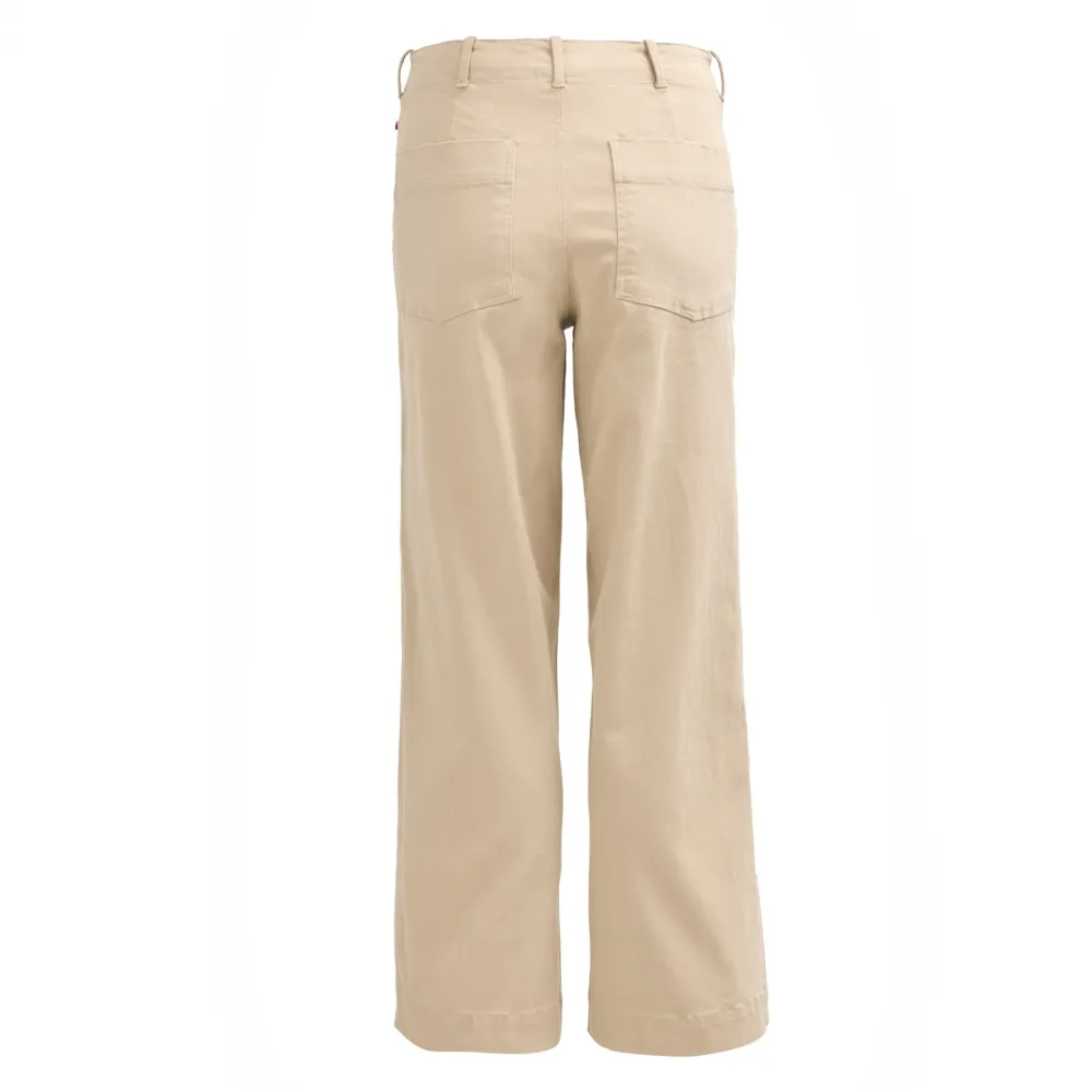 Diese Hose in angesagter 7/8 Länge und etwas weiterem Bein ist durch den naturfarbenen Twill ein echter Kombinationskünstler, da sie einfach zu allen anderen Farben in deinem Kleiderschrank passt. Die aufgesetzen eckigen Eingriffstaschen geben der Hose eine markante, neue Optik.“98% Baumwolle (bio) /2% Elasthan“