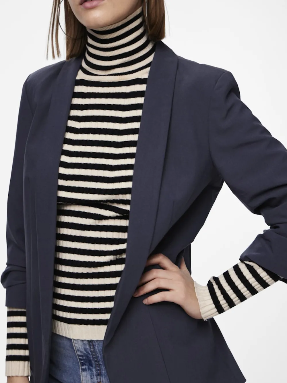 Langer Blazer- 3/4-Ärmel- Reguläre Passform- Faltendetails an den Ärmeln- Futter: Polyester- Das Modell ist 170 cm u…