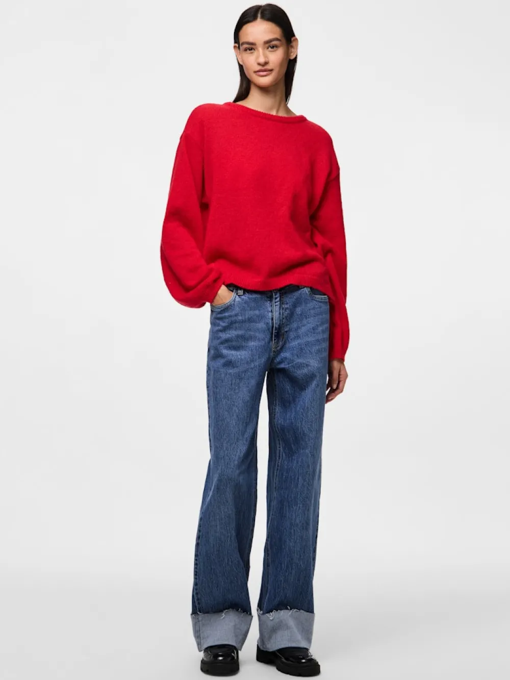 Pieces PCIda LS O-Neck Knit High Risk Red- Strick & Cardigans