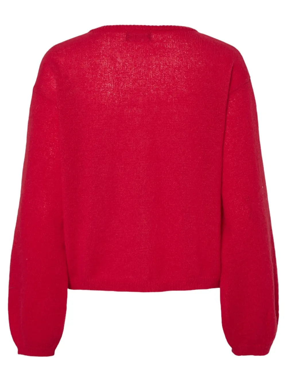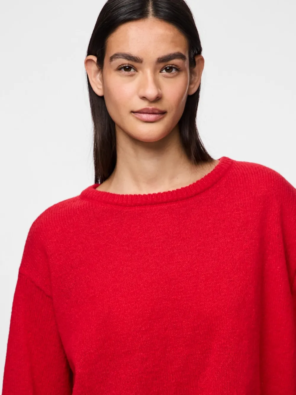 Pieces PCIda LS O-Neck Knit High Risk Red- Strick & Cardigans