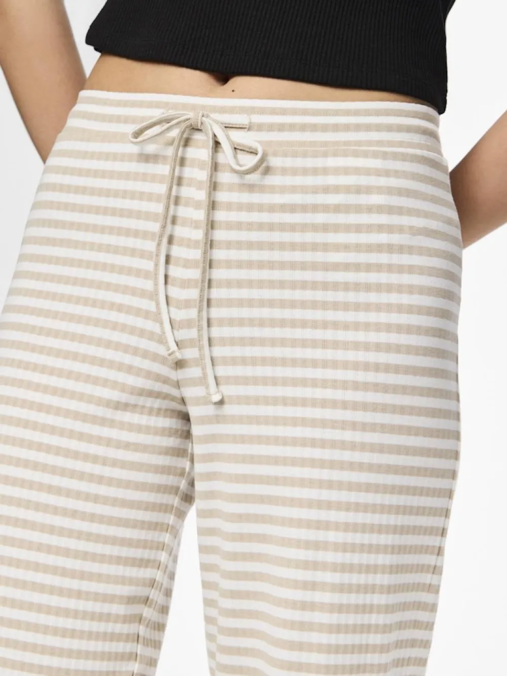 Gestreifte Stoffhose mit weitem Bein- Hohe Taille- Elastischer Bund- Verschluss mit Kordelzug- Weite Beinform. 65% Polyester, 30% Viskose, 5% Elasthan