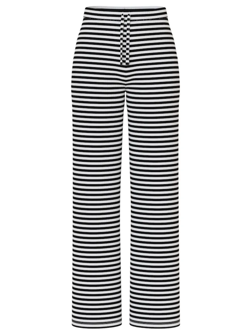 Gestreifte Stoffhose mit weitem Bein- Hohe Taille- Elastischer Bund- Verschluss mit Kordelzug- Weite Beinform. 65% Polyester, 30% Viskose, 5% Elasthan