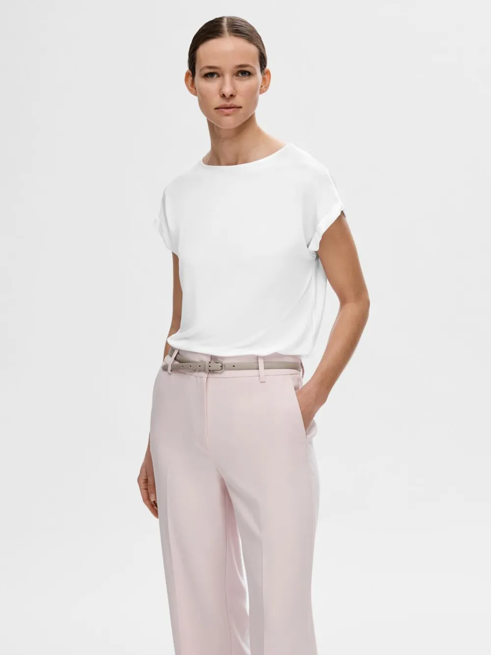 Selected Femme SLFBellis SS Boat Neck Tee Bright White- T-shirts & Tops