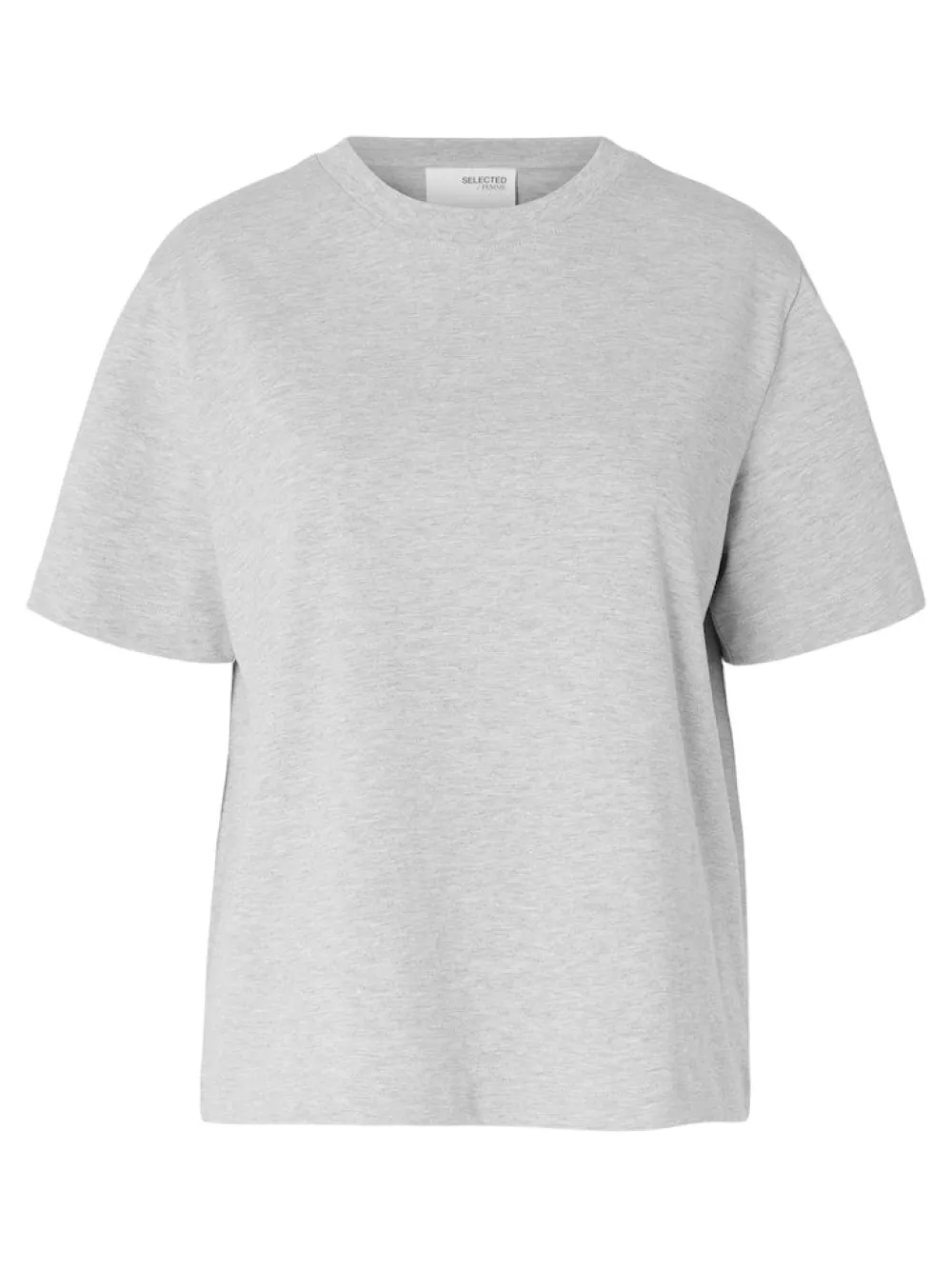 Selected Femme SLFEssential SS Boxy Tee Light Grey- T-shirts & Tops