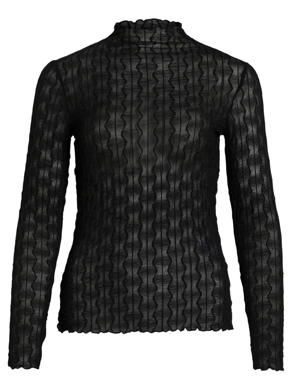 angärmeliges Mesh-Oberteil- Durchsichtiger Stoff mit Muster- Hoher Kragen- Dehnbarer Stoff- Körperbetonte Passform- Länge: 58 cm in Größe M- Ärmellänge: 64 cm in Größe M- Unser Model ist 180 cm groß und trägt Größe M97% Polyamid, 3% Elasthan