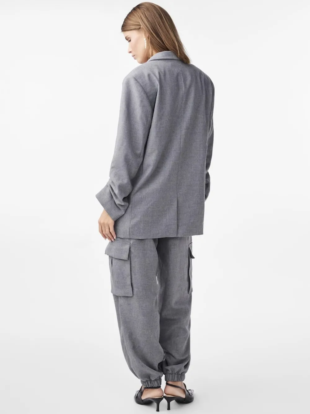 Einreihiger Blazer mit Oversize Fit- Teil eines Outfit-Sets- Lange Ärmel mit gerafftem Stoff an den Bündchen- Fallende…