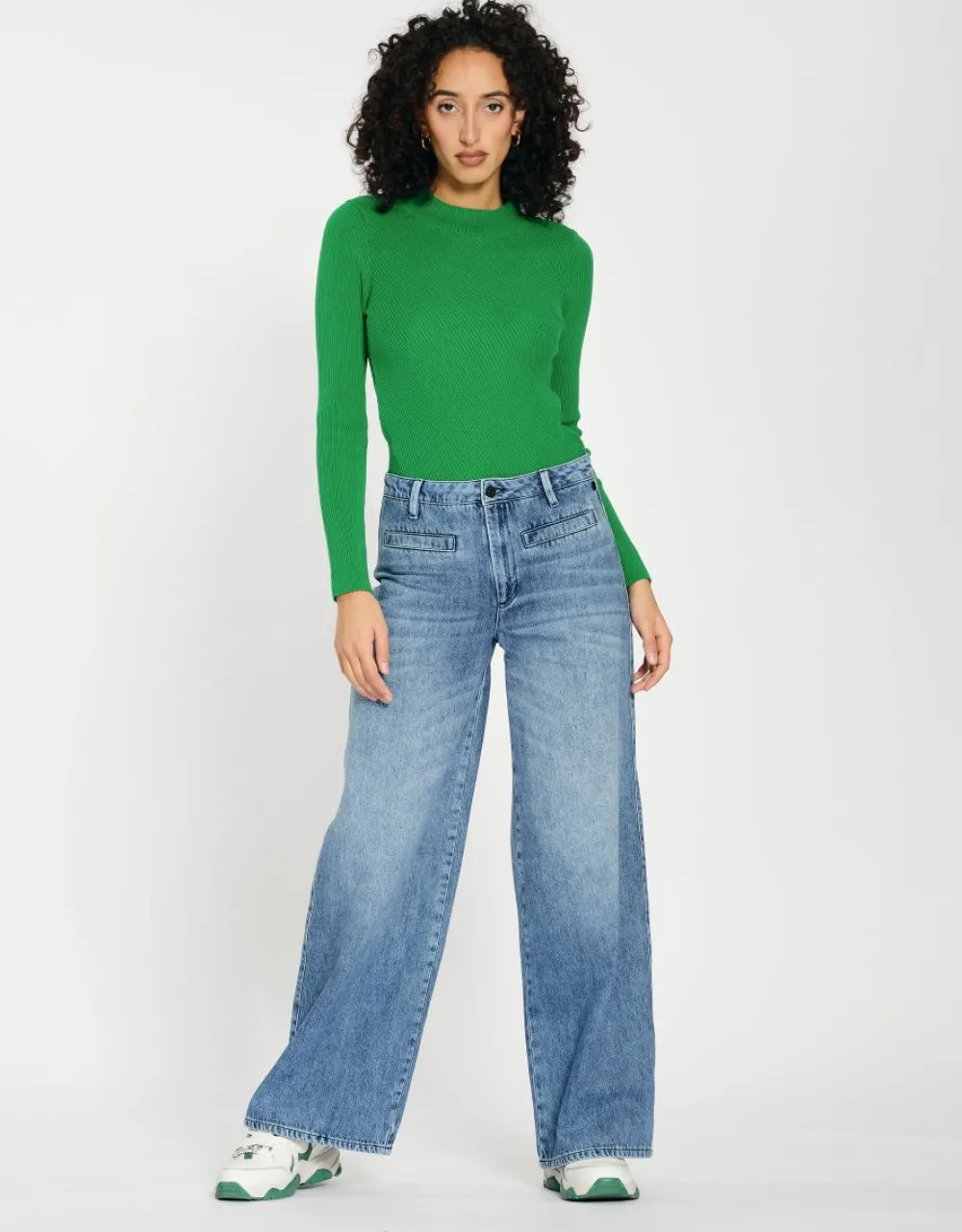 94ZIA ist ein modischer Wide Fit mir dekorativen Paspeltaschen auf der Vorderseite.Wide Fit Jeans mit mittlerer Leibhöh…