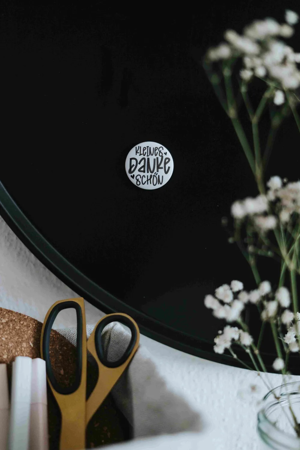 Entdecke unseren kleinen Magneten mit dem Spruch „Kleines Dankeschön“! Perfekt als liebevolles Geschenk, um deine Wertschätzung auszudrücken. Dieser stilvolle Magnet bringt Wärme und Dankbarkeit in jeden Raum. Überrasche deine Liebsten mit diesem besonderen Mitbringsel und zeige ihnen, wie sehr du ihre Unterstützung schätzt.Details Größe: 32 mm Durchmesser Matt und samtweich Design: Spruch oder Illustration in Schwarz-Weiß Perfekt für den Kühlschrank oder die Pinnwand