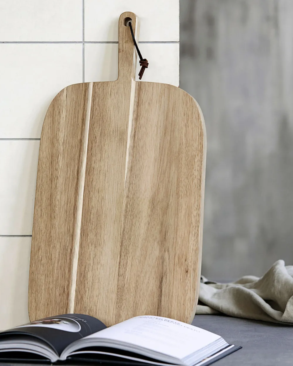 Schneidebretter aus unbehandeltem Holz sind der Hit! Dieses Schneidebrett von Nicolas Vahé aus schönem Akazienholz wird garantiert zum Liebling in der Küche und verleiht der Einrichtung eine ganz besondere Note. Das Schneidebrett namens Bread ist 51 cm lang, 27 cm breit und 2 cm hoch. Bread hat einen praktischen Griff, sodass es leicht zu tragen ist sowie eine Lederschnur, an der Sie das Brett als dekoratives Element an einem Haken in Ihrer Küche aufhängen können. Auf diese Weise ist das Bread-Schneidebrett jederzeit griff- und einsatzbereit.