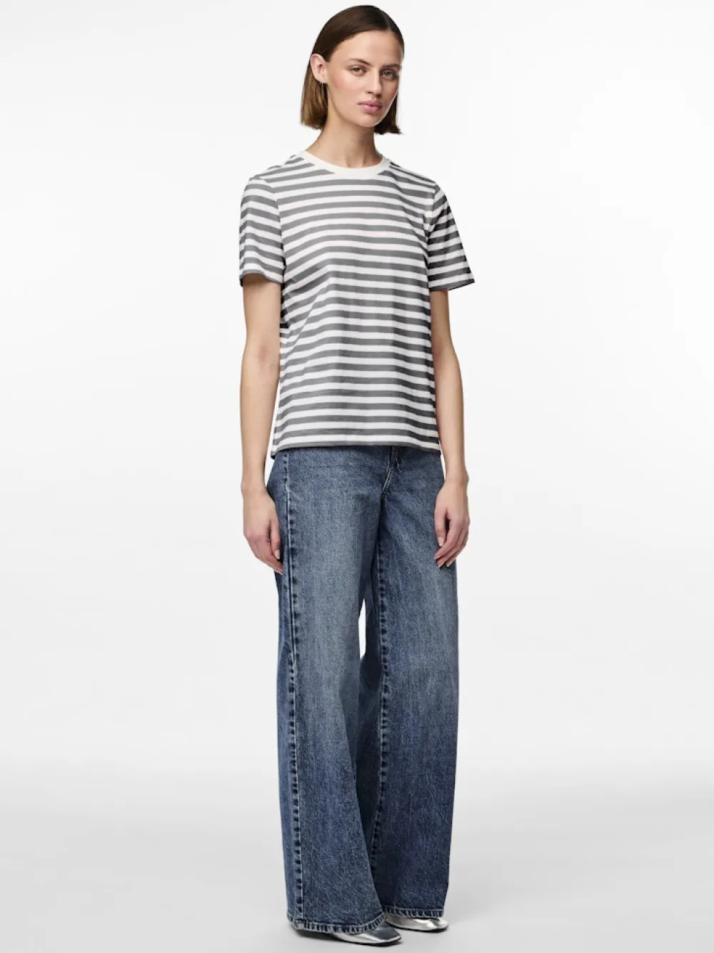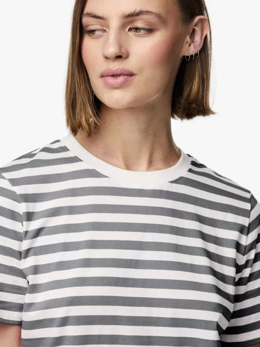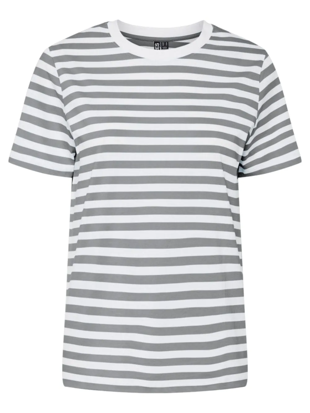 Pieces PCRia SS Tee Stripes Ultimate Grey- T-shirts & Tops