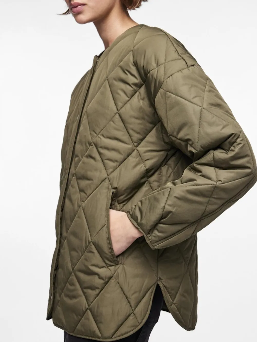 Steppjacke mit langen Ärmeln- Rundhalsausschnitt- Druckknopfblende- Überschnittene Ärmel- Muschelsaum an den Seiten- Paspelierte Säume- Mit Innenfutter- Oversize FitENTHÄLT RECYCELTEN POLYESTERDieses Produkt enthält recycelten Polyester. Recycelter Polyester schont die natürlichen Ressourcen und reduziert Abfälle.Außenmaterial: 50% Polyester, 50% Recycelter Polyester Futter: 100% Polyester Füllmaterial: 100% Polyester