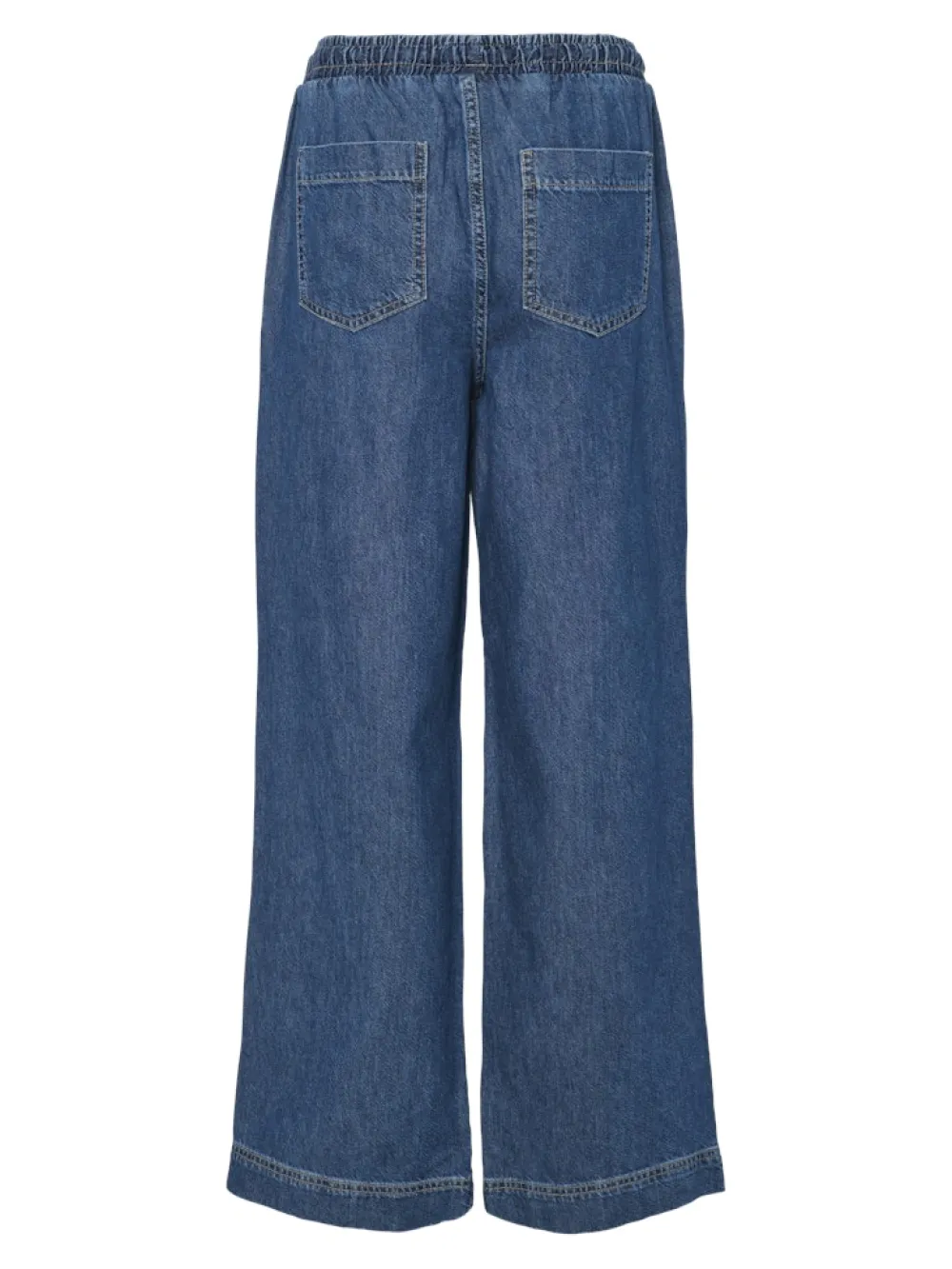 Pieces PCTari MW Pull Up Denim Pants Dark Blue- Jeans