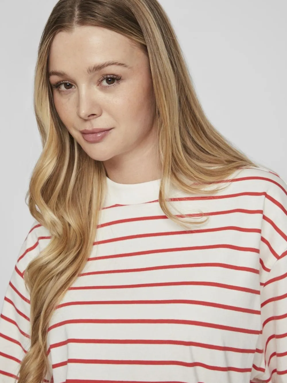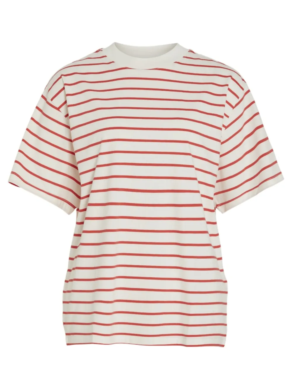 Vila VIJubilee 2/4 T-Shirt Egret/Poppy Red- T-shirts & Tops